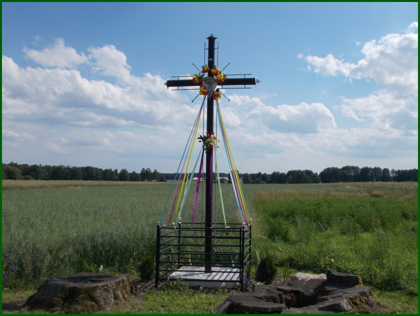 Kij - w centrum wsi (wcześniej ten krzyż był w drzewach)